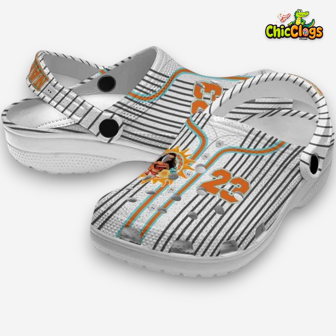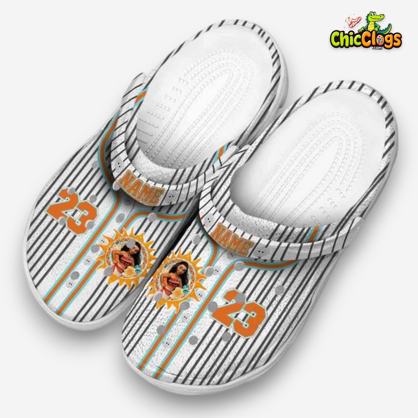 Custom Name Moana Pinstripe Pattern Unisex Crocs