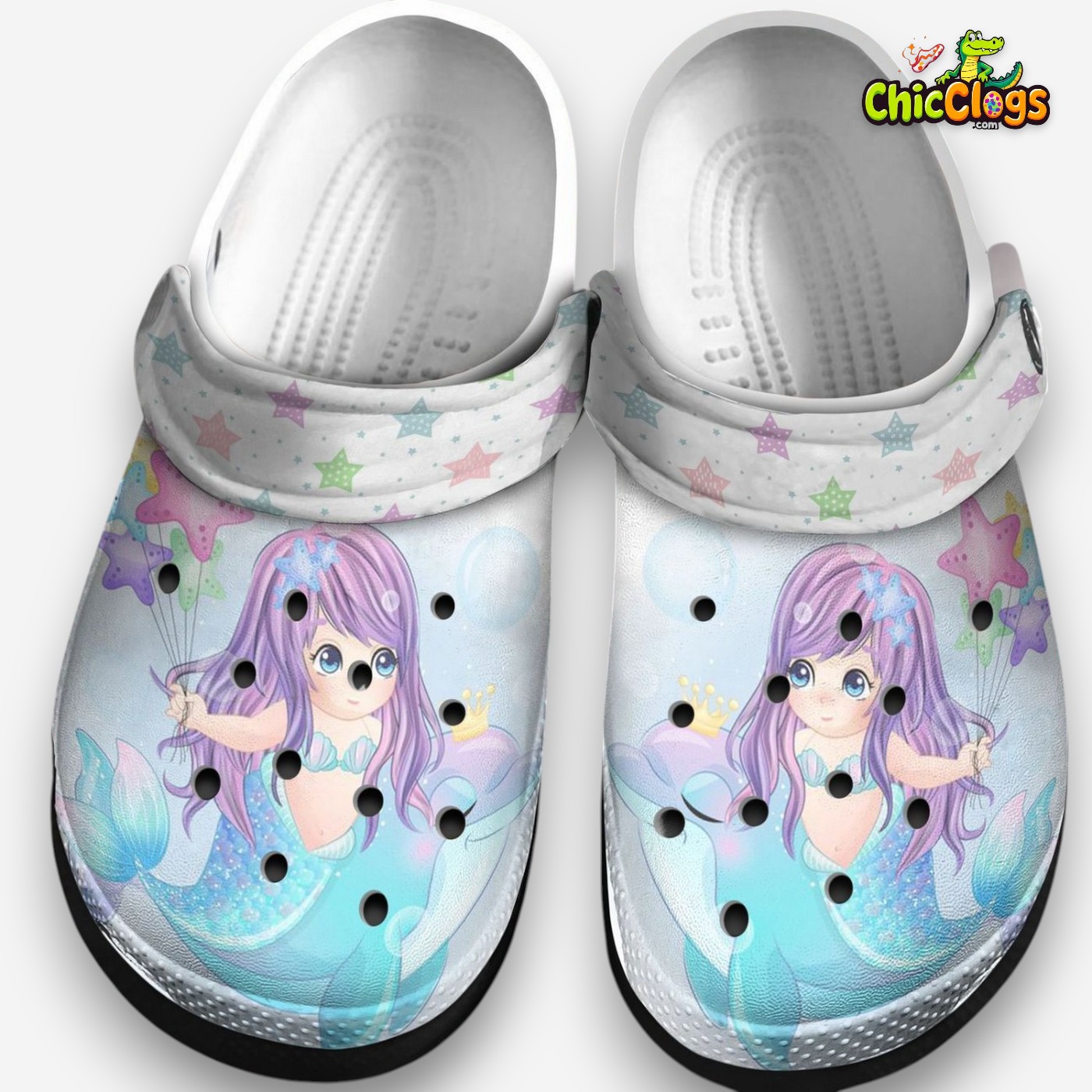 Cute Little Mermaid And Starfish Balloon Unisex Crocs Clog Shoes