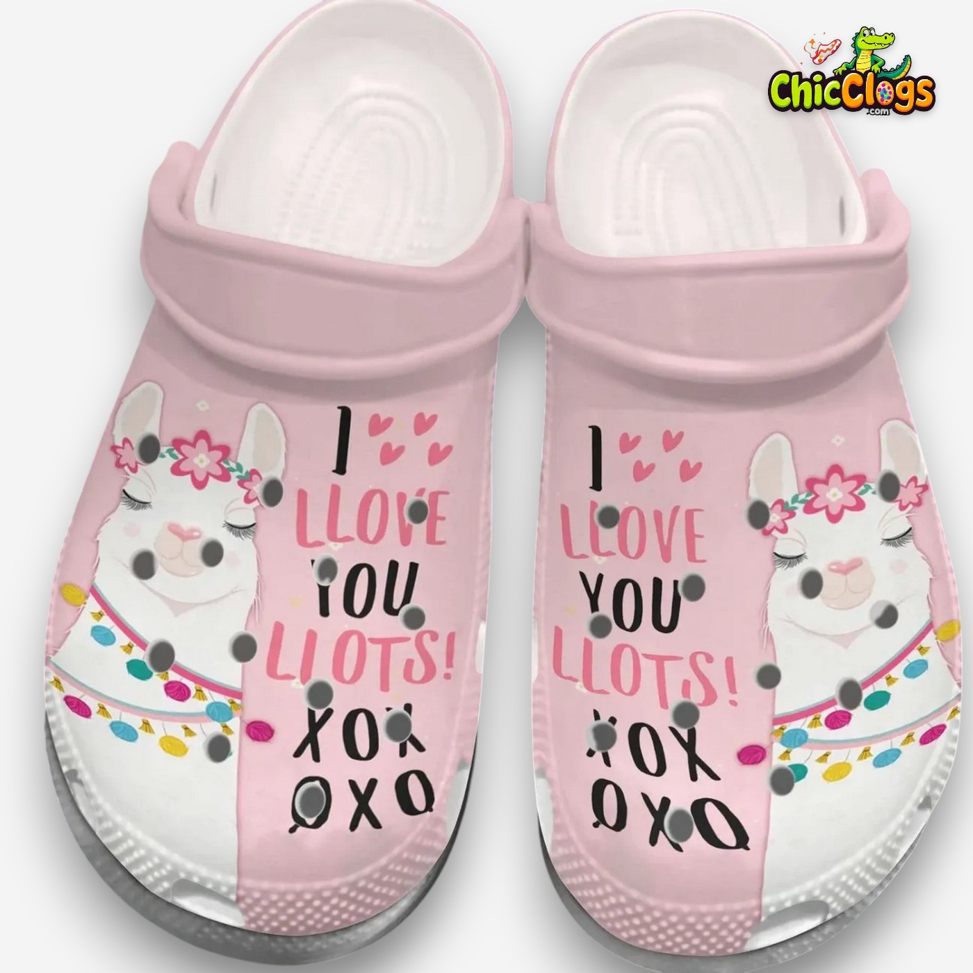Cute Llama I Love You Llots Xoxoxo Light Pink Unisex Crocs Clog Shoes