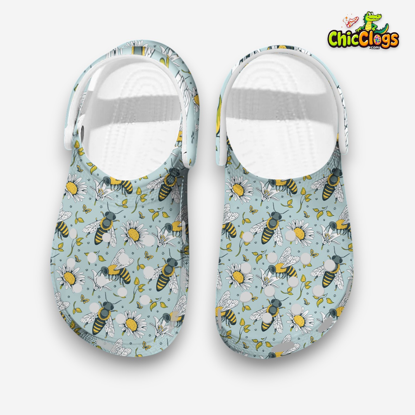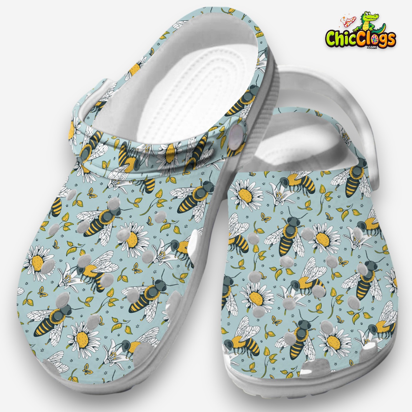 Nature Art Beautiful Bees And Daisy Green Classic Crocs Shoes