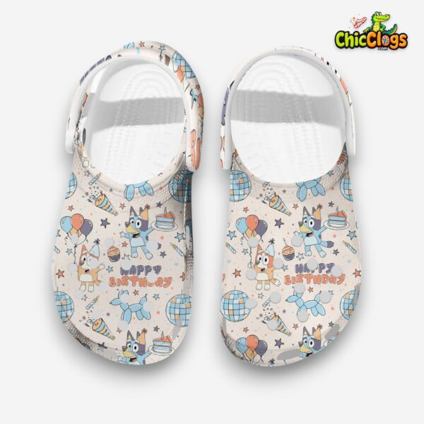 Celebrating Happy Birthday With Bluey Cute Beige 3D Printed Classic Crocs Shoes