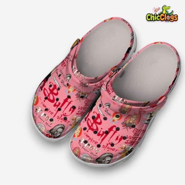 Step into style with these vibrant red clogs! Perfect for everyday wear, show off your love for Buffy in a fun, cartoon-inspired design. Get yours now at a fantastic price! Limited stock available.
