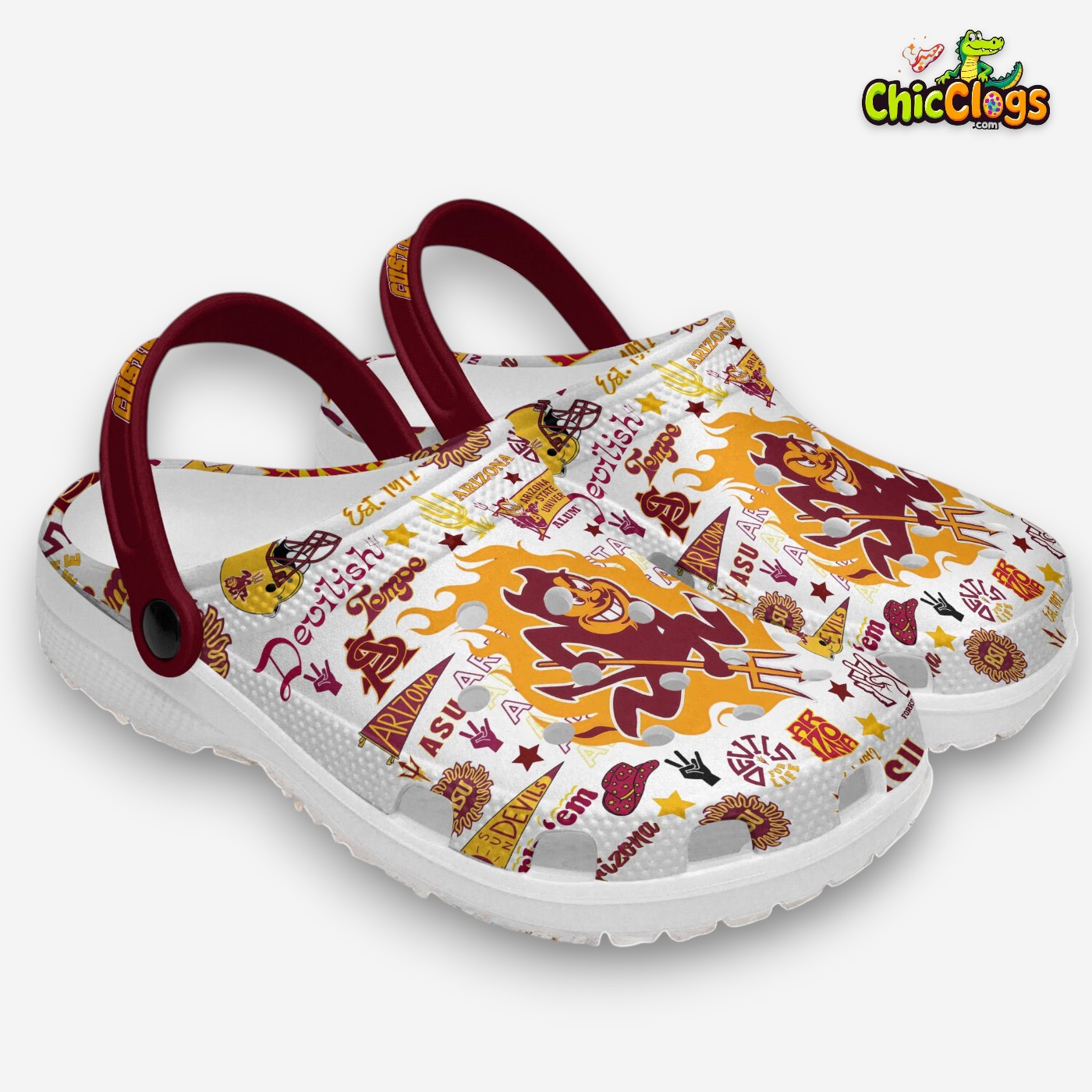 Show off your Sun Devil spirit with these hilarious and unique red Crocs! Perfect for game days, tailgates, or just kicking back in style. Get ready to turn heads and spark conversations with every step you take. Fork 'em! 🔱
