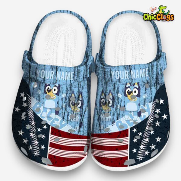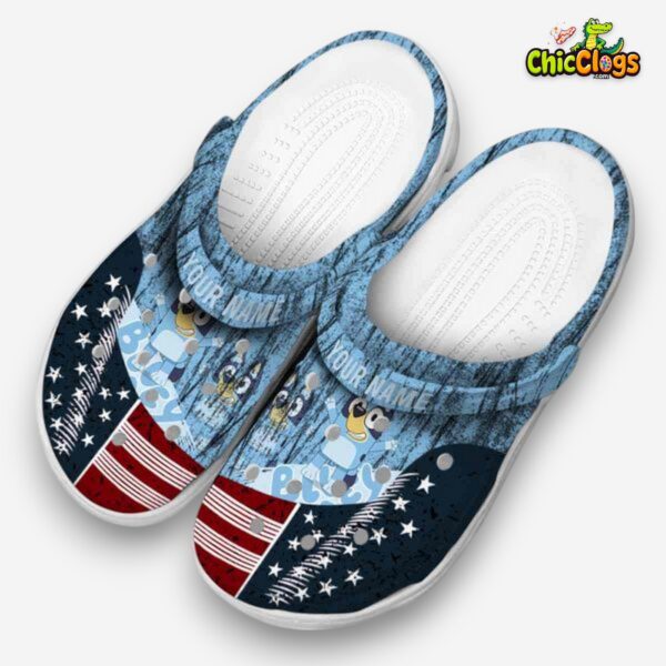 Custom Name Bluey Star Spangled Side Pattern 3D Printed Classic Crocs Shoes