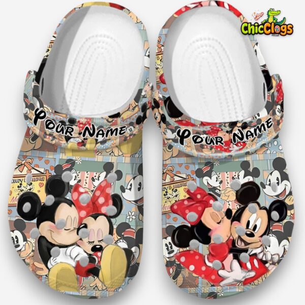 Custom Name Clogs Cute Couple Mickey And Minnie Classic Slippers