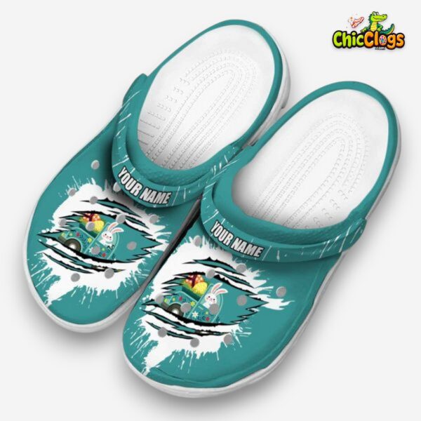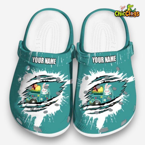 Imagine hopping through a splash of Easter fun with these vibrant Crocs! The playful design features a cheerful bunny and colorful eggs, all against a lively splash motif. It's like wearing a piece of joyful Easter morning right on your feet. Perfect for adding a personal touch to your springtime look. Ready to step into the season with flair? Grab yours today and let the fun begin!