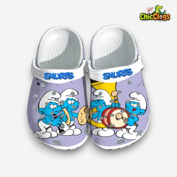 Step into nostalgia with these whimsical shoes featuring a playful Smurf band, ready to drum up some fun in every step! These charming blue characters, with their musical antics, bring back childhood smiles and joyous memories. Perfect for adding a dash of cheer to your day. Why not let the Smurfs march into your life and spread happiness? Grab a pair now and march to your own beat!