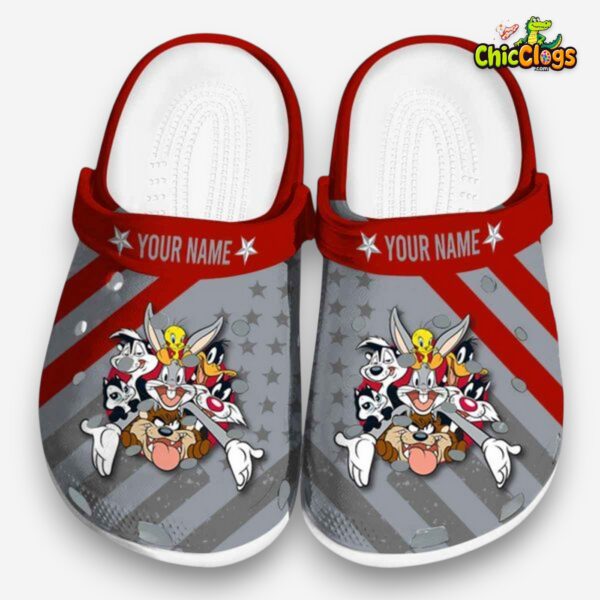 Step into summer with unique, personalized Crocs! 🇺🇸 Get your favorite Looney Tunes characters in a star-spangled design, 3D printed on classic Crocs. Show off your individual style with these comfy and eye-catching shoes. Order yours today and stand out from the crowd!