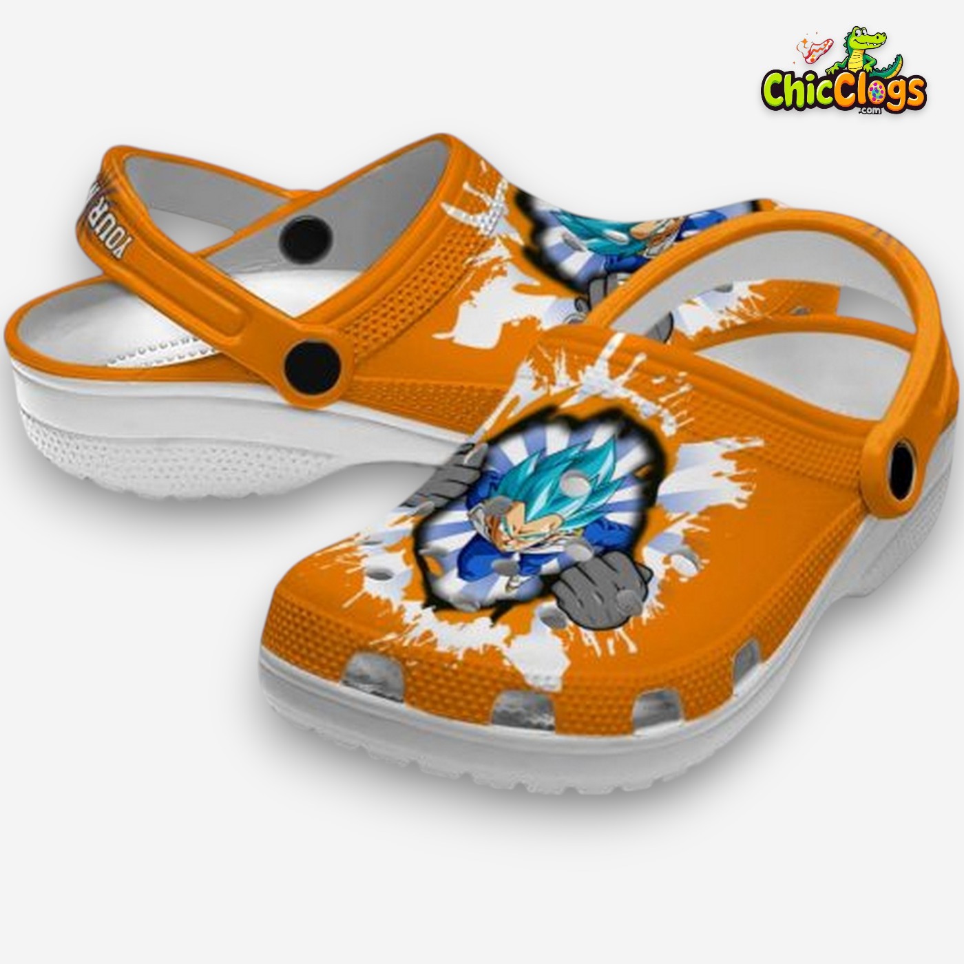 Unleash your Saiyan style with these awesome Crocs! Featuring a vibrant galaxy swirl design and the iconic Vegeta, these 3D printed shoes are out of this world. Perfect for Dragon Ball fans who want unique and comfortable footwear. Get yours today!