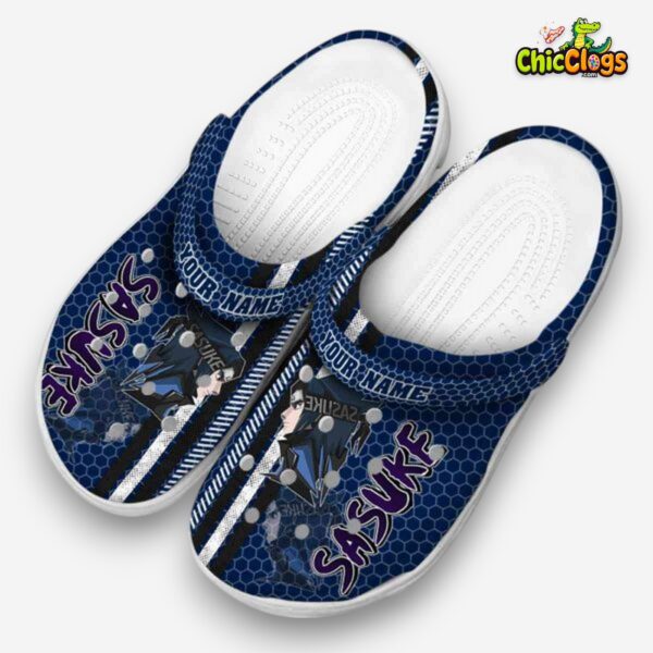 Step up your shoe game with these unique, striped clogs! Show off your love for Sasuke with a personalized touch. Enjoy speedy delivery so you can rock them ASAP. Limited quantities available – grab yours before they're gone!