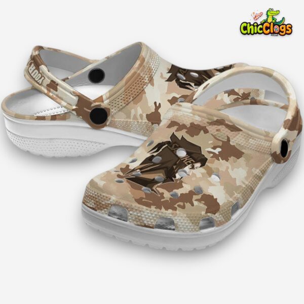Level up your comfort game with these unique, 3D-printed Crocs! Featuring a cool desert camo design and a personalized touch, they're a perfect way to show off your style and love for a certain ninja. Get yours today!