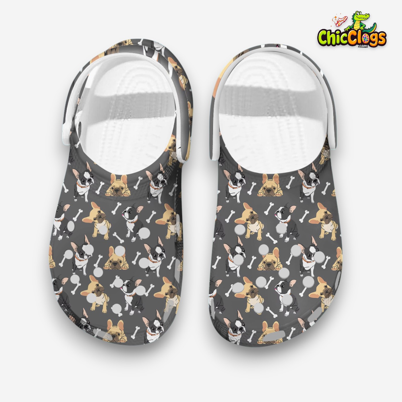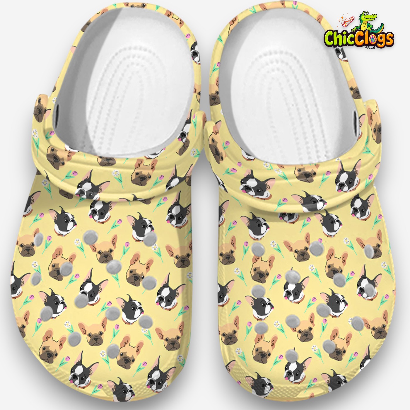 OMG! Look at these adorable Frenchie pups nestled in colorful pockets on white clogs. The ultimate blend of comfort and puppy love! Guaranteed to melt your heart. Get yours now and spread the happiness! Limited quantities available. 😍🐾
