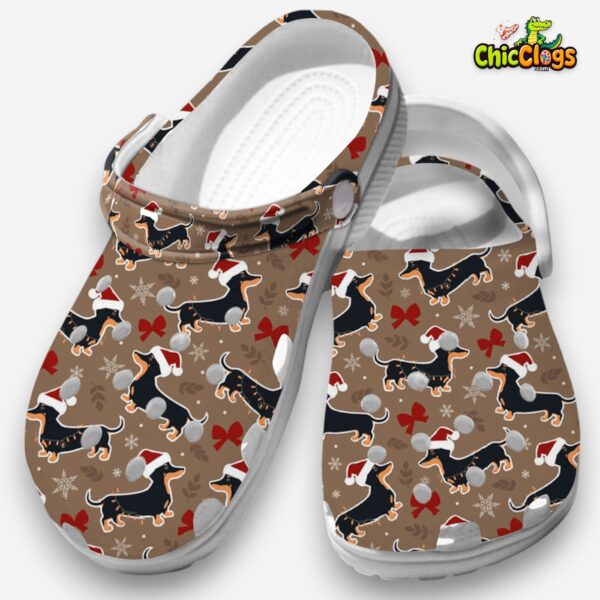 Funny Cute Christmas Theme Dachshund Wearing Santa Hat Pet Clogs
