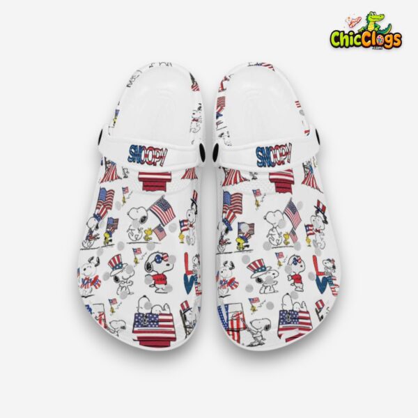 Step into summer with these adorable Snoopy-themed Crocs! Perfect for kids and adults, celebrate in style and comfort. Get yours now and show off your patriotic spirit with every step! Limited stock available.
