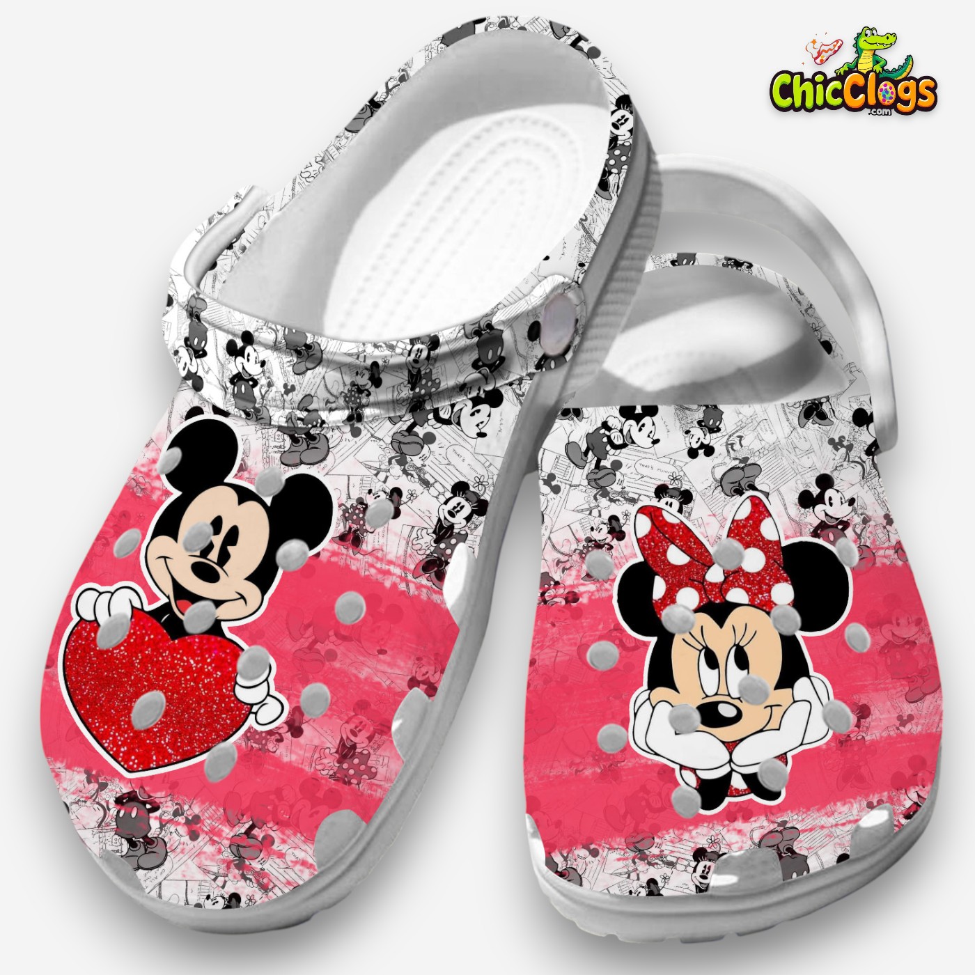 Romantic Mickey Kissing Minnie Mouse Cartoon White 3D Printed Classic Crocs Shoes