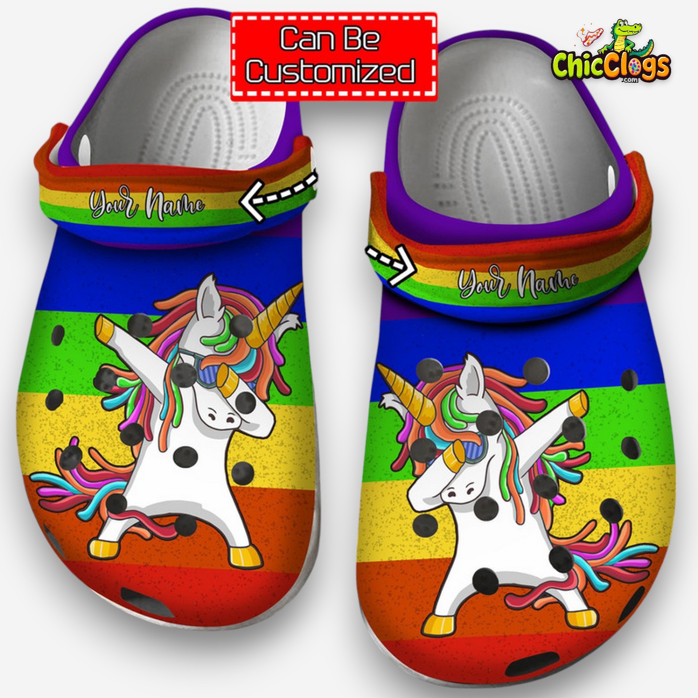 Custom Name Cute Cartoon Unicorn Follow The Photography Trend Rainbow Backgrounfd 3D Printed Classic Crocs Shoes