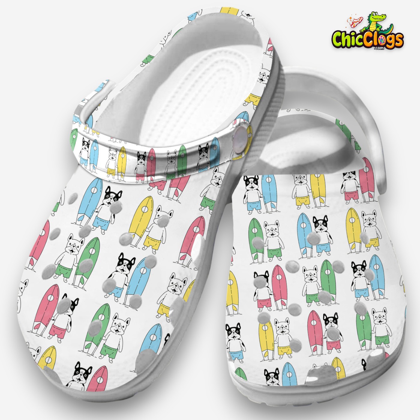 Soft & Durable French Bulldogs Go Surfing Classic Clogs Shoes